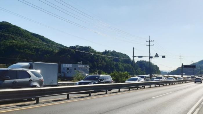 정체된 차량들은 청평면 하천리까지 이어지고 있다.