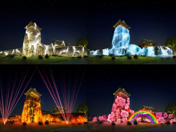 내년 4월 말부터 6월 초까지 수원화성 서북각루·화서문·서북공심돈·북포루 등에서 진행되는 ‘만천명월 : 정조의 꿈, 빛이 되다’는 ▲프로젝션맵핑( 대상물의 표면에 빛으로 이뤄진 영상 투사) ▲미디어 파사드(건물 외벽에 LED 조명을 비춰 영상을 표현하는 기법) ▲예술경관조명 ▲3D 사운드 ▲인터렉티브 아트(디지털 기술, 미디어를 이용해 관객과 작품이 상호작용하는 예술) 등을 결합한 대형 미디어 아트쇼다. 정조대왕 능행차 재현과 연계해 개최할 계획이다.
