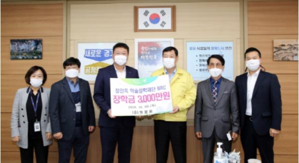 [KNT한국뉴스타임] 연천군은 삼표그룹의 장학재단인 정인욱학술장학재단 및 ㈜엔알씨(삼표그룹 계열사)에서 지난 8일 연천군청을 방문해 연천군 고등학생 및 대학(원)생 39명에게 장학금 3,000만원을 전달했다고 밝혔다.