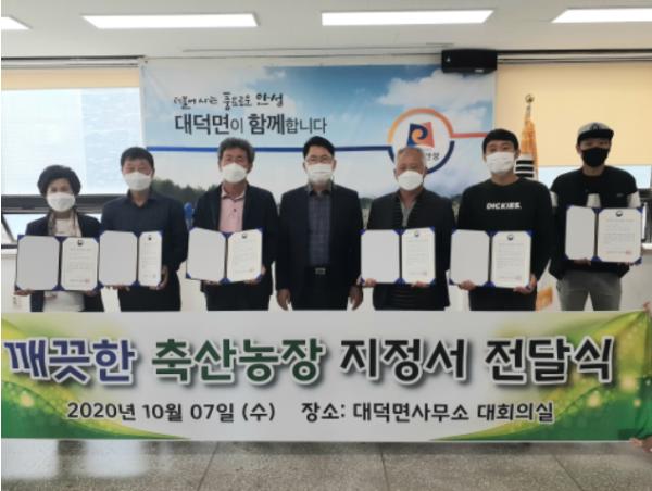 [KNT한국뉴스타임] 안성시 대덕면은 지난 7일 깨끗한 축산농장 지정서 전달식을 개최했다고 밝혔다.
