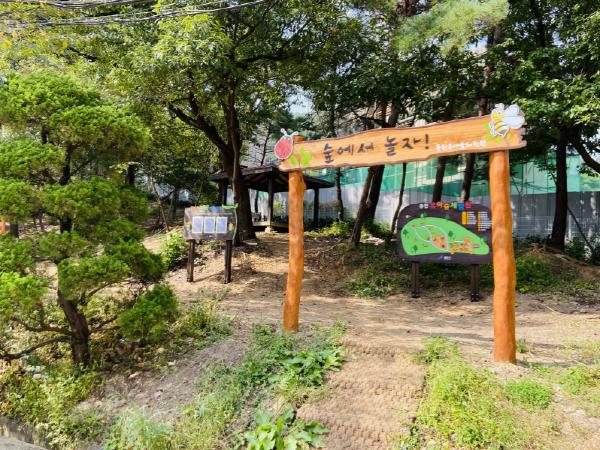 주변 지형과 숲을 살려 산책코스를 만들고 나무암벽오르기, 타잔놀이, 외줄통나무, 곤충 호텔 등 다양한 시설을 설치하고 대피소와 쉼터도 갖췄다.