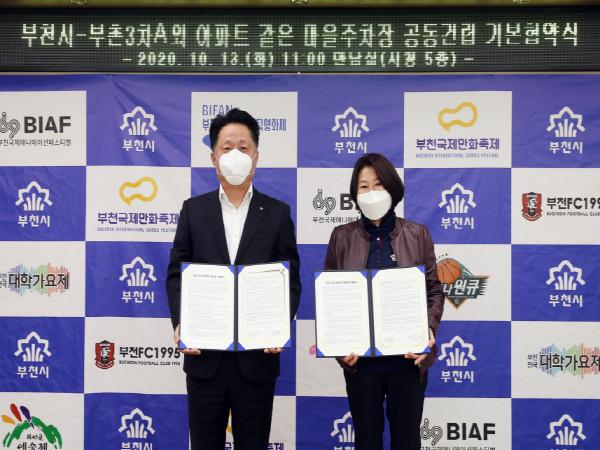 [KNT한국뉴스타임] 부천시는 지난 13일 시청 만남실에서 부촌3차아파트외 가로주택정비조합과 아파트 같은 마을주차장 공동건립 기본협약을 체결했다.