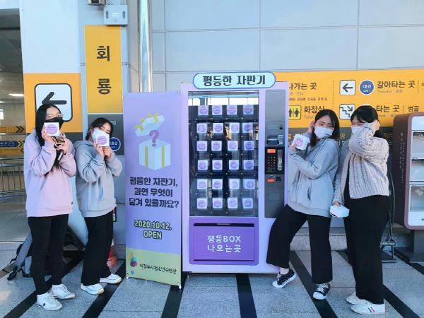 캠페인 기획에 참여한 청소년은 “코로나19로 인해 대면 캠페인이 어려운 상황에서, 무인 자판기를 활용해 안전한 방법으로 성평등 인식의 중요성을 또래 청소년들과 시민들에게 알릴 수 있어 기쁘다”고 말했다.