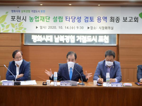 아울러 “포천시 농업재단은 포천 농업 뿐만 아니라, 평화시대 통일농업의 중심적 역할이 될 것이며, 농협 등 유관 기관과의 충분한 협의와 역할 분담을 통해 성공적인 재단이 설립 되길 바란다.”고 덧붙였다.