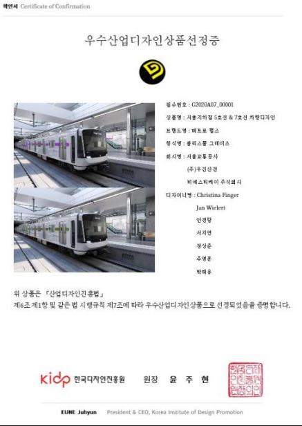 김상범 서울교통공사 사장은 “심미성과 편의성을 모두 살려 지하철을 보다 쾌적하게 이용할 수 있도록 힘쓴 공사의 노력이 높은 평가를 받아 기쁘다.”라며, “세계적으로 이름난 서울 지하철의 우수함을 더욱 널리 알릴 수 있는 디자인 개발에 힘쓰겠다.”라고 말했다.