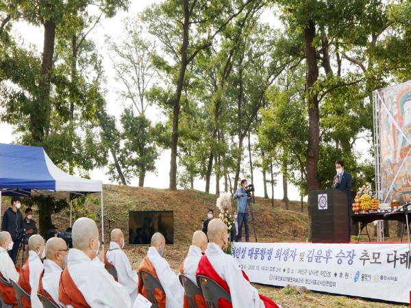 [KNT한국뉴스타임] 백군기 용인시장은 14일 남사면 아곡리 처인성에서 봉행된 ‘처인승첩 기념 김윤후 승장 추모 다례재’에 참석했다.