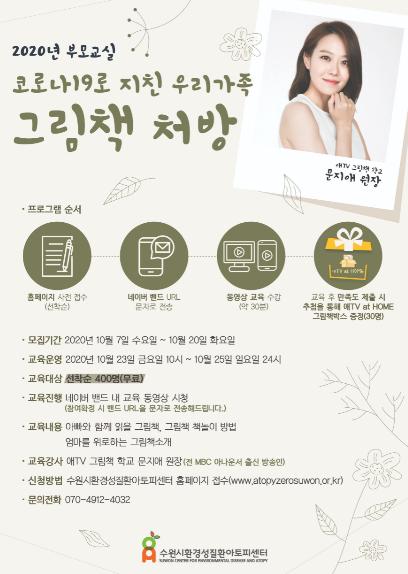 [KNT한국뉴스타임] 수원시환경성질환아토피센터가 영유아가 있는 가정을 위한 교육 프로그램 ‘우리 가족 그림책 처방’에 참여할 수강생 400명을 10월 20일까지 선착순으로 모집한다.