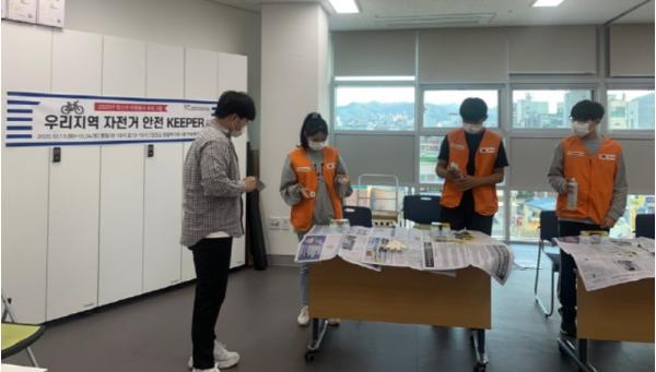 이번 청소년 자원봉사 프로그램은 24일(토)까지 11일간 일일 최대 5명의 청소년 자원봉사자가 참여하며, 코로나19 시대 슬기로운 자전거 생활 법과 자전거 교통안전 캠페인, 그리고 자전거 도난율을 줄이기 위한 자전거 번호판 만들기를 진행한다.