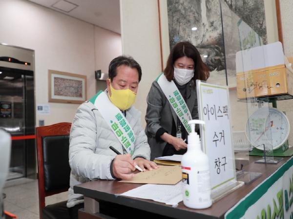 아이스팩 교환을 위해 방문한 한 시민은 “코로나19 장기화로 온라인으로 상품 구입을 많이 하다보니 아이스팩이 쌓여 처리가 곤란했는데 쓰레기도 줄이고종량제 봉투도 받을 수 있어 일석이조인 것 같아 너무 좋다. 요즘 시대에 꼭 맞는 아이템인 것 같아”며 칭찬했다.