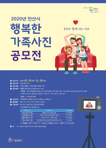 [KNT한국뉴스타임] 안산시는 오는 19일부터 가족친화적인 사회 분위기를 조성하고, 저출산 인식개선을 통한 시민들과의 공감대를 형성하기 위해 행복한 가족사진 공모전을 개최한다고 16일 밝혔다.