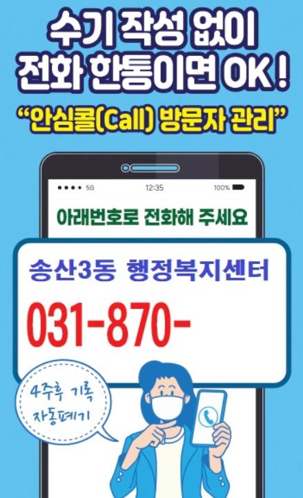 [KNT한국뉴스타임] 의정부시 송산권역은 청사 출입에 대한 편의를 제공하기 위해 10월 19일부터 송산권역 4개동(송산 1·2·3동, 자금동)에 안심콜 방문자관리시스템을 실시한다고 밝혔다.