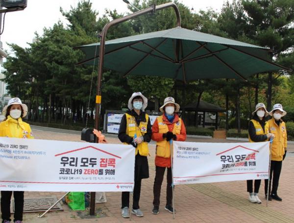 이번 캠페인은 지난 14일 전국 대한적십자사 주최로 전국 시ㆍ군에서 동시에 시민들에게 향균물티슈, 스마트폰 거치대 등 물품을 배부하며 마스크 착용 및 개인위생 수칙 준수 동참을 홍보했다.