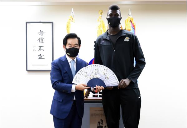 이 날 방호복 기부를 위해 KB손해보험 스타즈 배구단은 박경희 부사장을 비롯해 이태웅 단장, 이영수 사무국장, 이상렬 감독, 김학민·케이타 선수가 의정부를 방문했다.