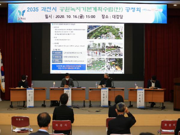 [KNT한국뉴스타임=과천] 지난 16일, 과천시청 대강당에서는 2035년 과천시 공원녹지기본계획(안)에 대한 시민공청회가 열렸다.