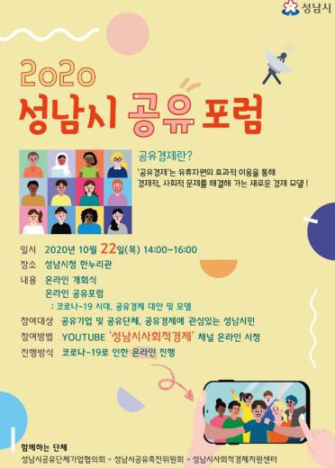 [KNT한국뉴스타임] 성남시는 코로나19로 위축된 일상생활 속 공유경제 활성화 방안을 모색하기 위해 오는 10월 22일 오후 2시~4시 온라인 포럼을 연다.
