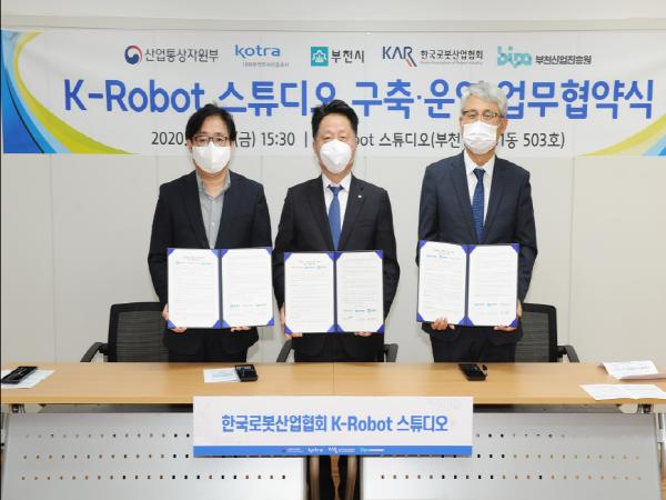 [KNT한국뉴스타임] 부천시는 지난 16일 한국로봇산업협회·부천산업진흥원과 기업의 비대면 마케팅 지원을 위해 ‘K-Robot 스튜디오 구축·운영 업무협약’을 맺었다.