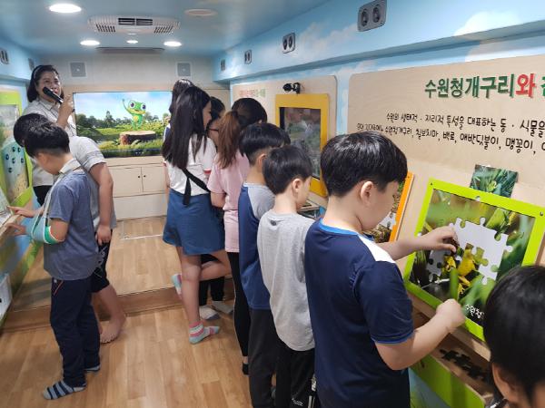 이 특별한 찾아가는 수원이 환경교실 버스를 통해 2018~2019년 2년간 6653명의 학생이 환경교육을 받았다. 버스 안에서 환경교육을 받은 학생들은 “수원청개구리가 왜 수원청개구리인지 알게 됐고, 살고 있는 고장 수원의 환경에 대해 많이 가르쳐 주어서 정말 재밌었다”고 반응했다.