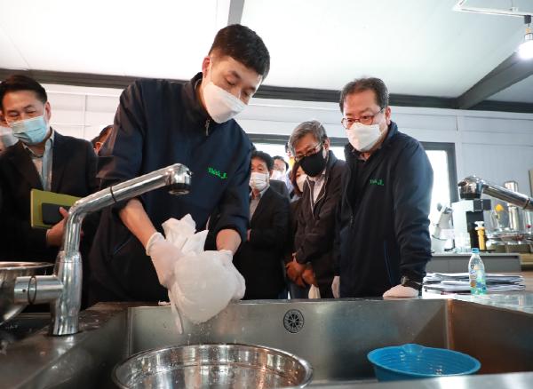 조광한 남양주시장과 박신환 부시장 및 관계 공무원 등이 참석한 이날 행사는 먼저 전략기획관과 자원순환과에서 소금을 이용한 용해과정과 건조기를 이용한 아이스팩 건조 시연 후 그동안 추진된 아이스팩 분리배출 시범사업 운영 계획을 보고하고 개선방안에 대해 논의하는 순서로 진행됐다.