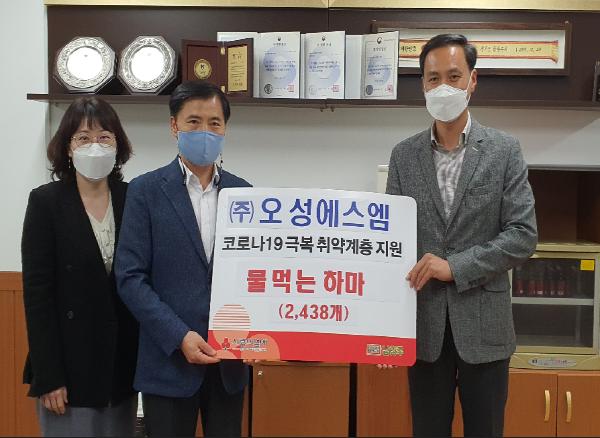 2003년부터 주방용품, 판촉물 등을 주요사업으로 하는 ㈜오성에스엠은 사원수 30여명이 근무하는 중소기업으로 “코로나19 장기화로 모두 힘든 시기를 겪고 있는 이때, 어려운 이웃을 위한 나눔 실천을 고민한 끝에 물품을 전달하게 되었다”고 기부 동기를 전했다.