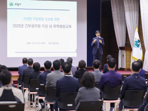 [KNT한국뉴스타임] 의왕시는 21일 간부공무원 200여명을 대상으로 한 직장 내 폭력예방교육을 집합교육과 영상교육으로 동시에 실시했다.