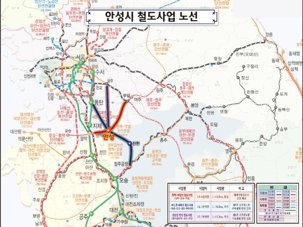 수도권 내륙선 철도사업은 동탄에서 안성과 진천을 거쳐 청주공항까지 총연장 78.8km의 단선철도로 사업비 약 2조 5000억 원이 소요되고, 경강선 연장 철도사업은 광주에서 용인을 거쳐 안성까지 총연장 53.3km의 복선철도로 사업비 약 3조 7000억 원이 소요된다.