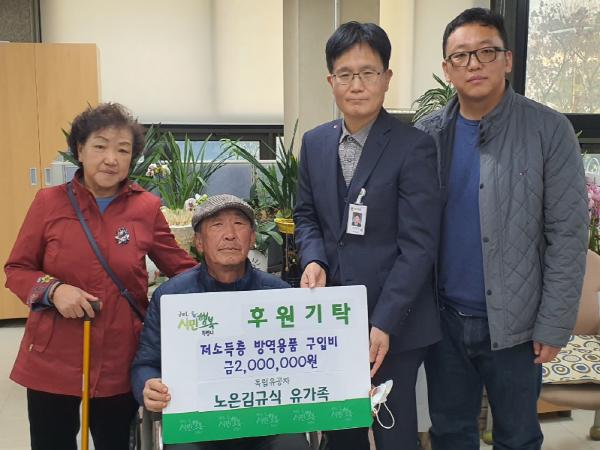 이날 후원금은 김규식 선생의 후손인 손 김건배(77세)와 배우자 이윤화(75세), 증손 김령필(45세)세 분이 선친의 나라사랑 뜻을 이어 신종 바이러스와의 사투로 어려움에 처한 시에 도움이 됐으면 좋겠다는 뜻으로 200만원을 후원했다.