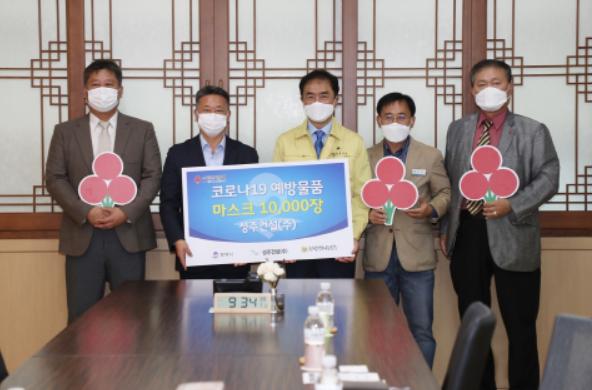 성주건설(주)은 토목 및 건축공사를 하는 관내업체로 권혁조 대표는 “코로나19의 집단발생이 곳곳에서 발생하고 있어 지역사회에 감염피해가 없기를 바라는 마음으로 나눔을 실천하게 됐으며 지역사회 일원으로 역할을 하게 돼 기쁘다”고 말했다