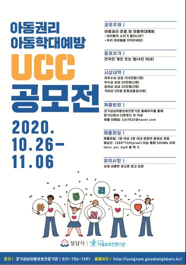 [KNT한국뉴스타임] 성남시는 오는 11월 6일까지 전 국민을 대상으로 아동권리 존중과 아동학대 예방에 관한 UCC(사용자 제작 콘텐츠) 공모전을 개최한다.