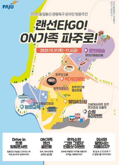 [KNT한국뉴스타임] 파주시는 10월 31일 밤부터 오는 11월 6일까지 일주일동안 온라인 비대면 통일동산 관광특구 방문주간을 운영한다고 밝혔다.
