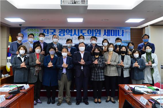 특강 진행 후 세미나에 참석한 11개 광역시도의회 의원들은 지역별로 진행되고 있는 그린뉴딜 정책의 현황과 주요 추진계획, 건의사항 등을 발표하고 앞으로 그린뉴딜 정책을 성공적으로 추진하기 위해 우선적으로 ▶광역시도의회가 광역자치단체, 지역사회와 함께 해야 할 일 ▶광역시도의회간 상설적인 연대와 협력 사항 ▶중앙정부와 국회에 건의하거나 협력해야 할 일 등 3가지로 나눠 실천적 공동과제들을 마련하고 서로 보완, 공유하여 실행에 옮기기로 의견을 모았다.