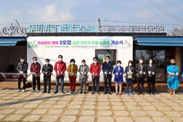 [KNT한국뉴스타임] 평택시는 지난 26일 오성면 당거쉼터(당거리 501-96) 주차장 내에 위치한 ‘두바퀴의 행복’ 공공자전거무료대여소 2호점 개소식을 진행했다고 밝혔다.