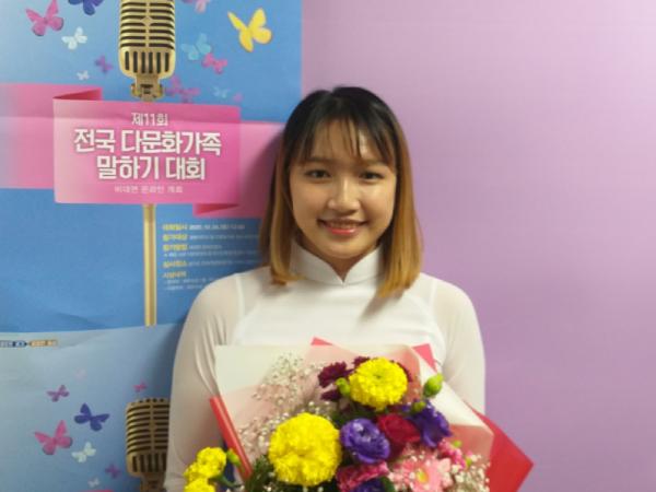 이날 대회에서 최우수상을 수상한 팜뉴뉴는 ‘아빠 같은 남편’이라는 주제로 어린 나이에 꿈을 포기하고 한국 결혼 생활을 선택했지만 남편의 도움으로 관광통역사의 꿈을 찾아 도전해 나가는 이야기를 따뜻하게 풀어내어 듣는 이들에게 감동을 선사했다.