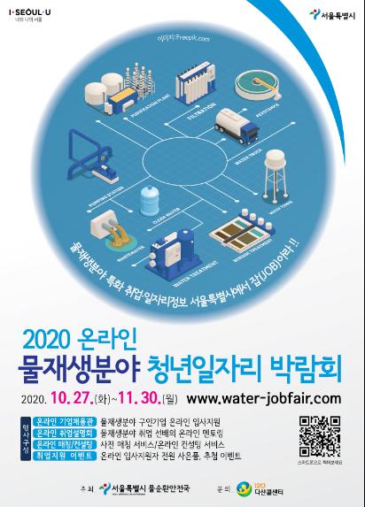 [KNT한국뉴스타임] 서울시가 토목, 환경 등 물재생 분야에 취업을 희망하는 청년과 기업을 연결해주는 ‘제3회 물재생분야 청년일자리 박람회’를 10.27(화)~11.30(월) 온라인(www.water-jobfair.com)으로 개최한다.