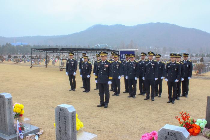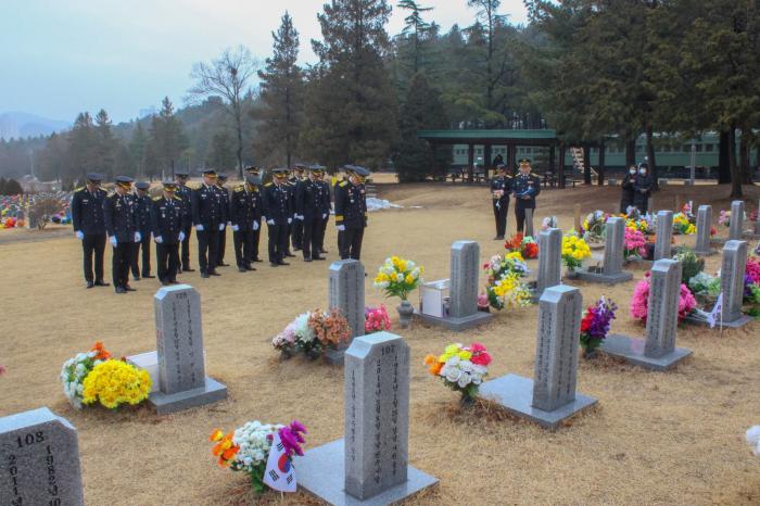 포천소방서(서장 한경복)는 지난 2013년 2월 13일 가산면 공장화재 진압활동 중 순직한 故 윤영수 소방장의 순직 7주기를 맞아 숭고한 희생정신과 넋을 기리고자 13일 오전 국립대전현충원에서 추모행사를 가졌다.