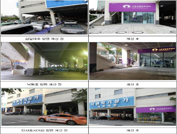 낙원생활문화센터는 도시재생정책의 차원에서도 의미가 크다. 즉 노후된 낙원상가 하부공간의 기존 주차장 일부를 축소하여 생긴 공간에 총면적 580㎡ 규모의 큐브형태 11개에 다양한 기능을 수행하는 생활문화활동의 핵심공간으로 만들어 밝고 쾌적하게 바꾼 것이다.