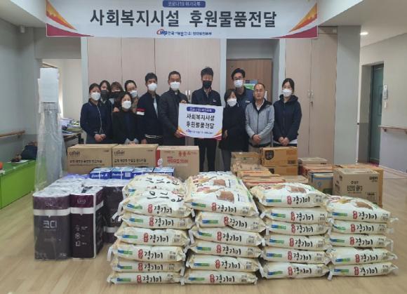 [KNT한국뉴스타임] 한국서부발전 ㈜평택발전본부(황해석 본부장)는 지난 26일 코로나 19 극복을 위해 비대면 발열측정기, 방역물품 및 식자재, 빔프로젝트 등 후원 물품을 노인복지시설 1개소, 장애인복지시설 3개소, 지역아동센터 5개소에 전달했다.