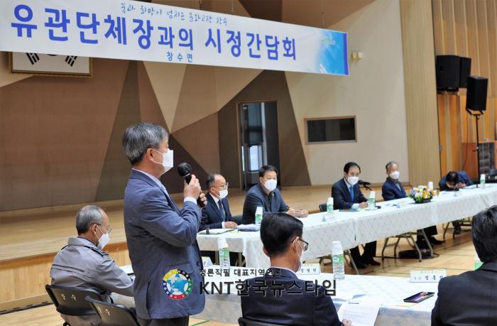 [한국뉴스타임=명기자] 27일 오후 포천시 박윤국시장은 창수교육문화센터에서 창수면 유관단체장과의 시정간담회를 가졌다.
