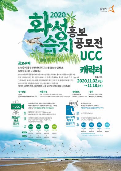 ‘화성습지 홍보 공모전’은 UCC공모전(23초 영화제)과 캐릭터공모전(알락꼬리마도요 얼굴 찾기)으로 접수기간은 11월 2일부터 18일까지 이며 대한민국 국민 누구나 참여가 가능하다.