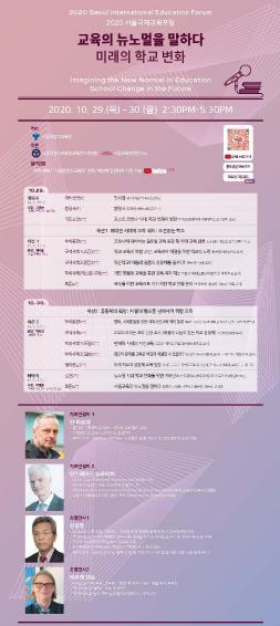 [KNT한국뉴스타임] 서울특별시교육청 산하 교육연구정보원 교육정책연구소는 10월 29일(목), 30일(금) 이틀 간 「2020 서울국제교육포럼(Seoul International Education Forum」을 개최한다.