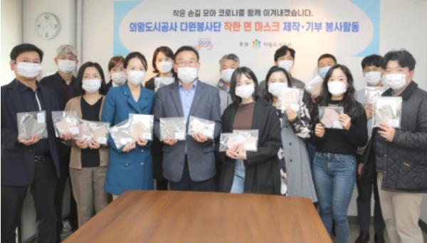 이번‘착한 면 마스크 제작·기부 봉사활동’에 참여한 의왕도시공사 직원들은 코로나19 장기화로 어려움을 겪는 이들에게 도움이 되고자 한마음이 되어 작은 손길을 모아 면 마스크를 직접 제작했다.