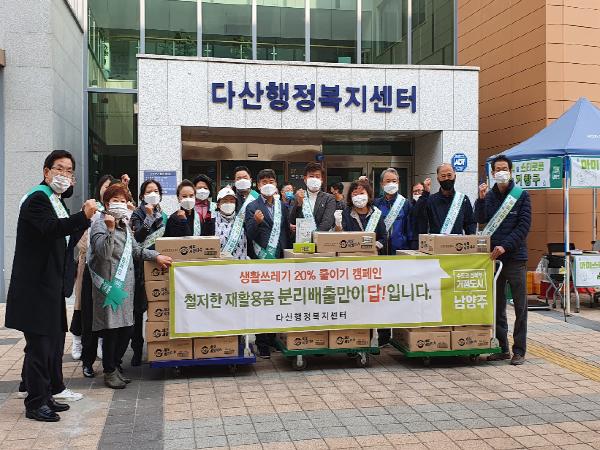 [KNT한국뉴스타임] 다산1동 주민자치위원회는 지난 27일 통장협의회 회원 40여 명과 함께 생활쓰레기 20% 줄이기 캠페인을 실시했다.