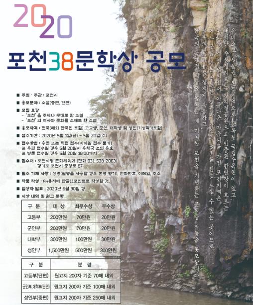 [KNT한국뉴스타임] 포천시는 ’2020 포천38문학상‘작품을 공모한다고 밝혔다.