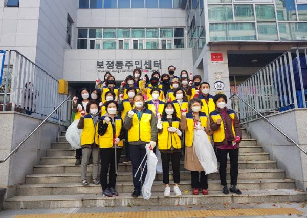 보정동 통장협의회는‘2020 보정동 카페거리 해피 할로윈’기간을 맞이하여 카페거리 및 탄천까지 영역을 넓혀 보정동 관내 대청소에 나섰다.