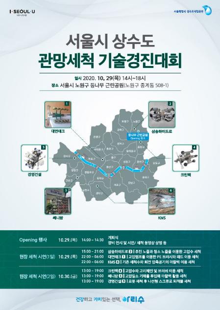 한편, 경진대회에 앞서 상수도사업본부는 서울시 전역에서 상수관 시범 세척이 가능한 11개 구간을 선정했다. 대상 구간은 1985년부터 1988년 사이에 부설돼 40여년이 경과된 400㎜ 이상의 대형관으로, 관종은 모두 2세대 강관인 덕타일주철관(DCIP)이다.