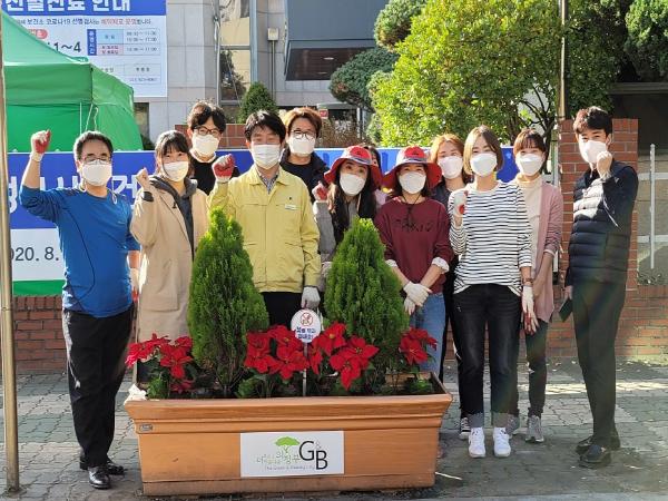 이번 꽃 심기 행사는 올해 상반기 치매안심마을(가능동 27통)과 보건소 일대에 식재했던 시든 베고니아를 제거하고 추운 날씨에 대비하여 유지 가능한 작물(꽃 배추, 포인세티아 조화)을 이용하여 조성하였다.