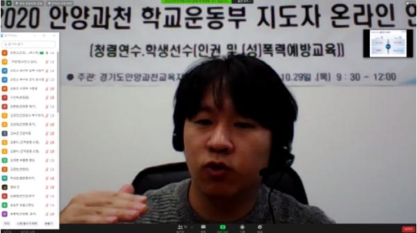 이번 연수는 코로나-19 감염병 예방을 위하여 온라인 실시간 쌍방향 연수로 실시되었으며, 안양과천교육지원청 감사담당 주무관과 한국교원대학교 박종률 교수를 강사로 위촉해 청렴한 학교운동부 운영과 학생선수 인권보호를 위한 지도자의 역할을 주제로 진행되었다.