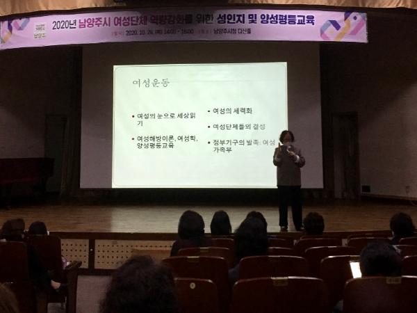 [KNT한국뉴스타임] 남양주시는 지난 29일 시청 다산홀에서 관내 여성단체 회원 50여 명을 대상으로 성인지 및 양성평등교육을 실시했다.