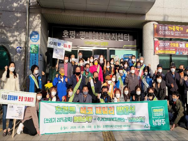 [KNT한국뉴스타임] 남양주시 호평·평내 행정복지센터(센터장 이영재)는 지난 29일 통장협의회, 주민자치위원회, 새마을부녀회 등 호평동 사회단체 회원 50여 명이 참여한 가운데 ‘에코 패밀리(Eco-Family)’를 구성하고 발대식을 개최했다.