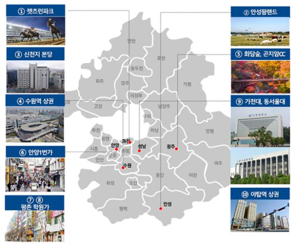 렛츠런파크(과천시 과천동), 안성팜랜드(안성시 미양면), 화담숲 및 곤지암CC(광주시 도척면) 등은 주말 방문객이 급감하여 유동인구 감소 폭이 컸다.