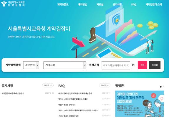 [KNT한국뉴스타임] 서울특별시교육청은 어렵고 복잡한 학교계약업무를 초보자도 쉽게 따라할 수 있도록 비대면「온라인 계약길잡이」서비스를 11월 2일(월)부터 시작한다.